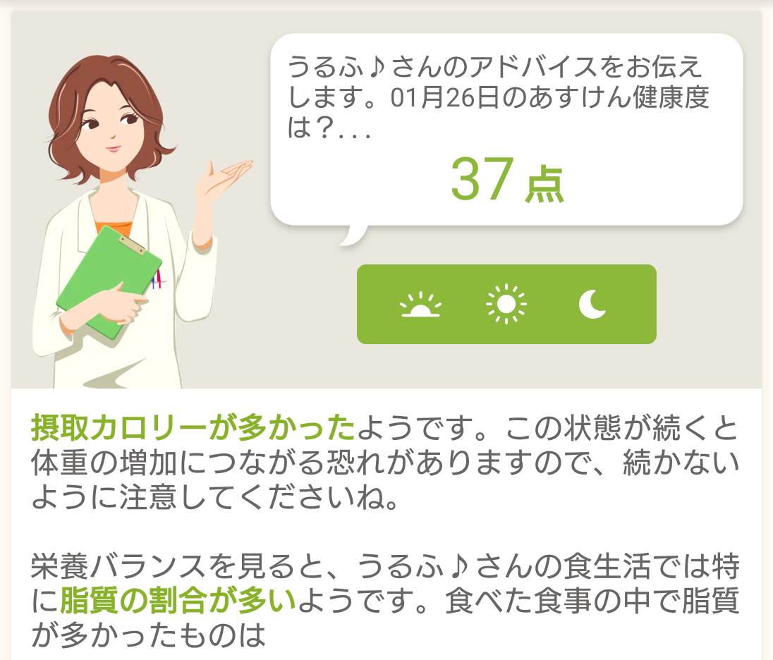 今日のあすけん、37点でした。