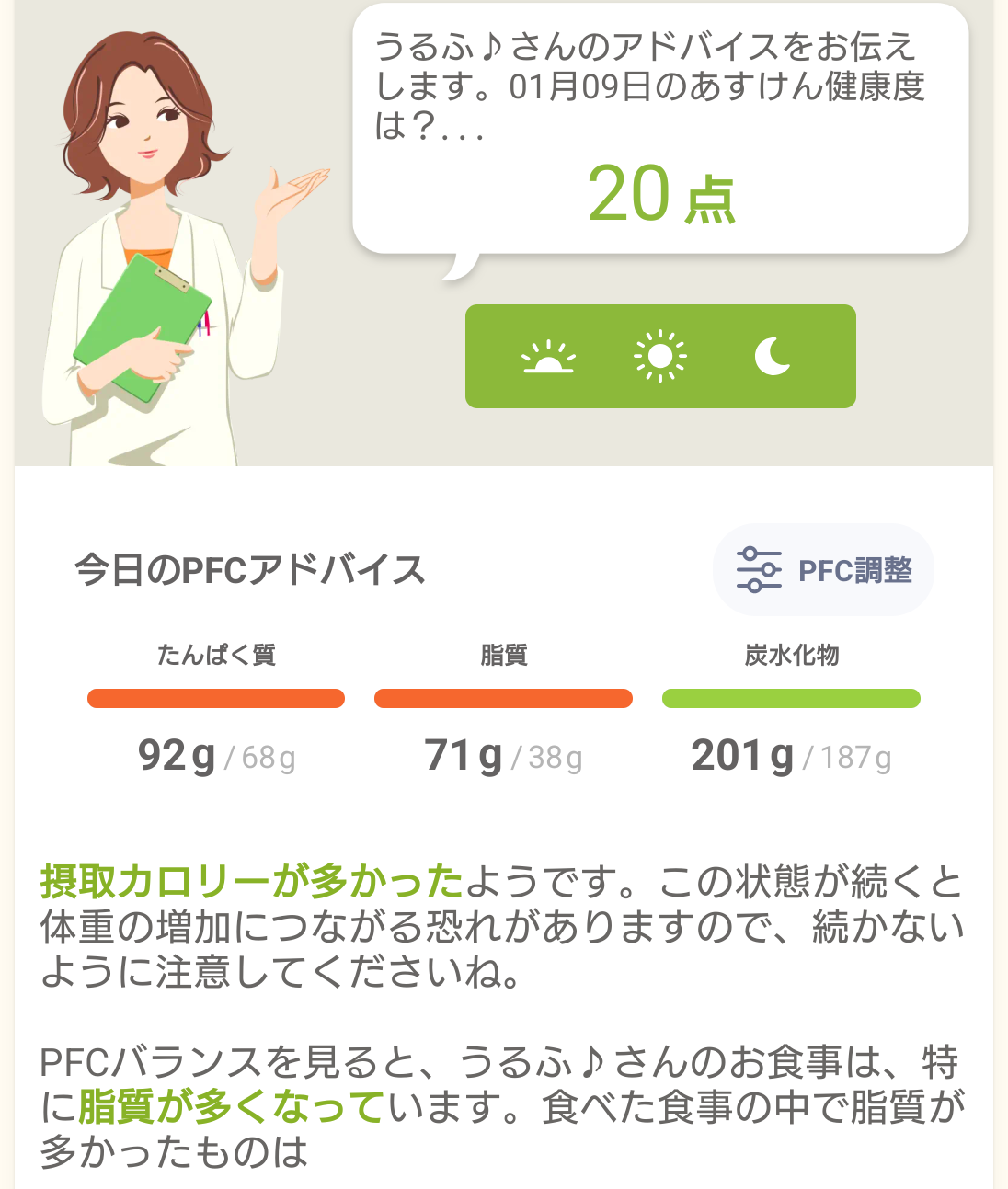 今日のあすけん、20点でした。